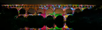 Chaque soir d’été, le Pont du Gard propose une nouvelle création son & lumière qui sublime le monument.