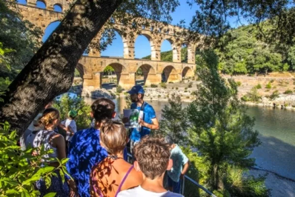 Visitez le Pont du Gard à votre rythme avec un audio-guide et découvrez toute l'histoire de l'aqueduc de Nîmes et du génie des bâtisseurs romains. Embarquez 2000 ans d'histoire sur votre téléphone et partez à la découverte du plus haut pont romain au monde.